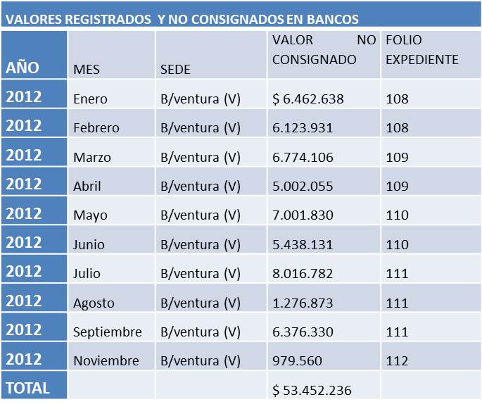 Los recursos no consignados se registran en el siguiente cuadro:
